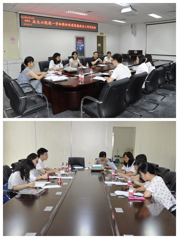 为了全面贯彻中央31号文件精神,落实习近平总书记重要讲话精神和全国高校思想政治工作会议精神,加强和改进医院思想政治工作,2017年5月医院党委协同教育处、研究生党支部共同制定了《北京大学第六医院深入贯彻落实中央精神、进一步加强和改进思想政治工作的实施方案》(以下简称“《实施方案》”)。为确保把《实施方案》落到实处,保障工作效果,2017年7月14日上午,我院召开了进一步加强和改进思想政治工作讨论会。会议由我院党委副书记、纪委书记刘靖老师主持。参会人员包括教育处处长王丰、党院办副主任何小璐、团委宣传委员吕博雅、教育处张莹老师以及研究生党支部书记刘璐、副书记陈超、宣传委员邵岩。