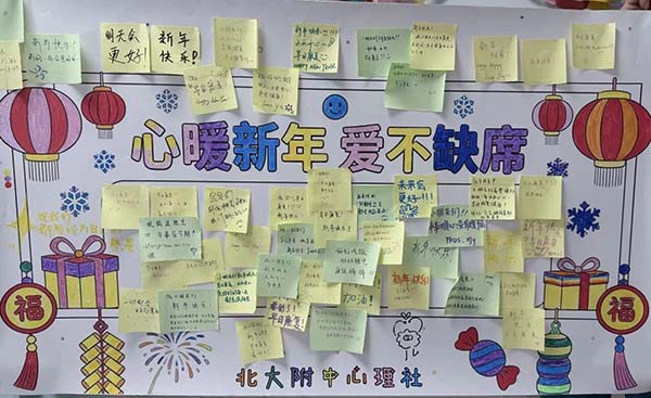 医患同心暖冬岁,多方关爱聚暖流。医护代表纷纷用歌声送上节日祝福,用暖心话语鼓励孩子们勇敢面对挑战、早日康复,北京大学附属中学心理社的老师同学们特意为孩子们准备了百人共同绘制的主题板报和精心挑选的礼物,以笔墨传递心意,用馈赠寄托期盼。让这份关爱直达心底。