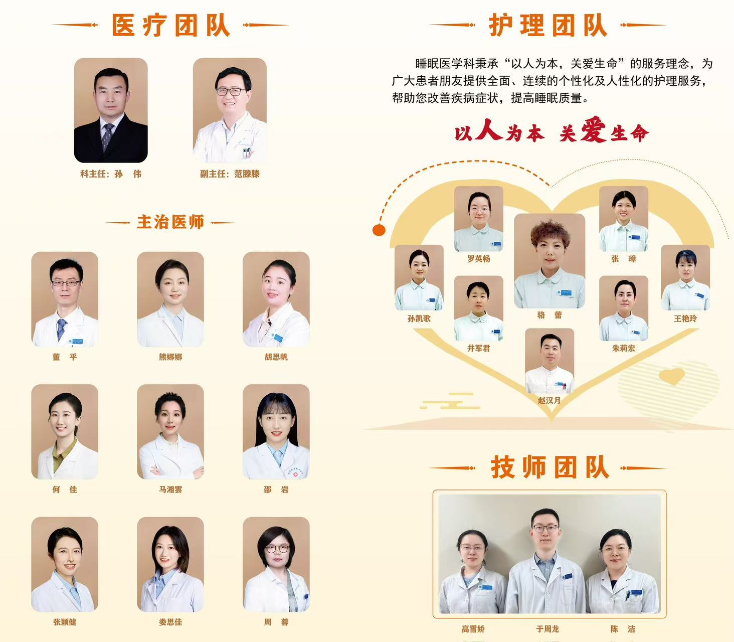 北京大学第六医院睡眠医学中心于2014年3月成立。中国科学院院士陆林教授为学科带头人,孙洪强教授为首任科室主任。睡眠医学中心由睡眠专业门诊、睡眠功能检查室、睡眠医学科病房、睡眠医学研究室等四部分组成。其中睡眠医学科病房为特需病房设置,共有19张床位,均为单间病房,配备独立卫生间、电视、冰箱等,可以收治失眠障碍、不安腿综合征、快速眼动睡眠行为障碍、发作性睡病、周期性嗜睡、睡眠呼吸暂停、睡眠节律障碍、安眠药及酒精依赖、焦虑障碍、抑郁障碍等患者。病房提供多导睡眠监测、多次睡眠潜伏期测试、药物治疗、物理治疗、心理行为治疗、中西医结合治疗、呼吸机治疗等综合性诊疗服务。科主任:孙伟护士长:骆蕾副主任:范滕滕主治医师:董平、熊娜娜、胡思帆、何佳、马湘雲、邵岩、张颖健、娄思佳、周蓉技师:高雪娇、陈洁、于周龙