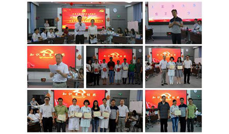 经过紧张激烈的角逐,最终精研所机关获得一等奖,后勤和病房一支部获二等奖,门诊支部、病房二支部、研一支部、研二支部、研究生支部获三等奖。竞赛还评选出个人奖五名,分别为:最佳表现奖孙思伟、最高人气奖卢婷婷、学富五车奖李俊、勇气可嘉奖宫小云、广学多才奖张岩。医学部和医院领导给获奖集体和个人颁奖并合影留念。