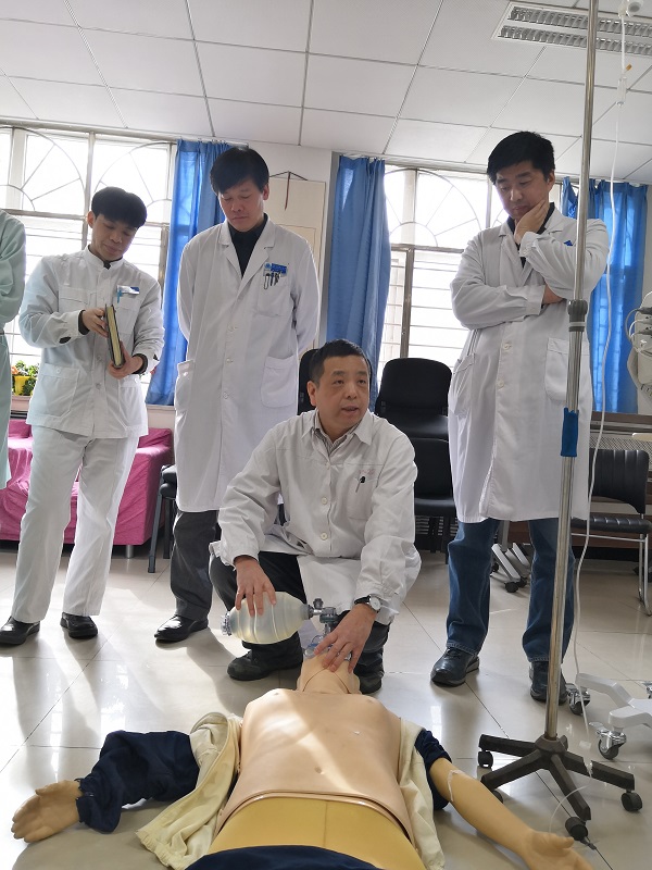 为全面强化我院医务人员急救意识,提高各病区抢救患者时的医护配合程度,规范抢救流程,1月30日全天,在我院孙洪强副院长的带领下,医务处佘永军处长和黄剑副处长、护理部王涌主任和王小鸥老师、急救培训小组付艺医生以及安定医院急诊科刘子军主任一起对我院八个病区进行了急救技能的考核。考核过程中重点对各病区的医护配合程度、心肺复苏技能、科室的响应时间和实际到位时间进行了检查。通过现场模拟实际操作,大家明确了仍需改进的问题以及急救演练的必要。