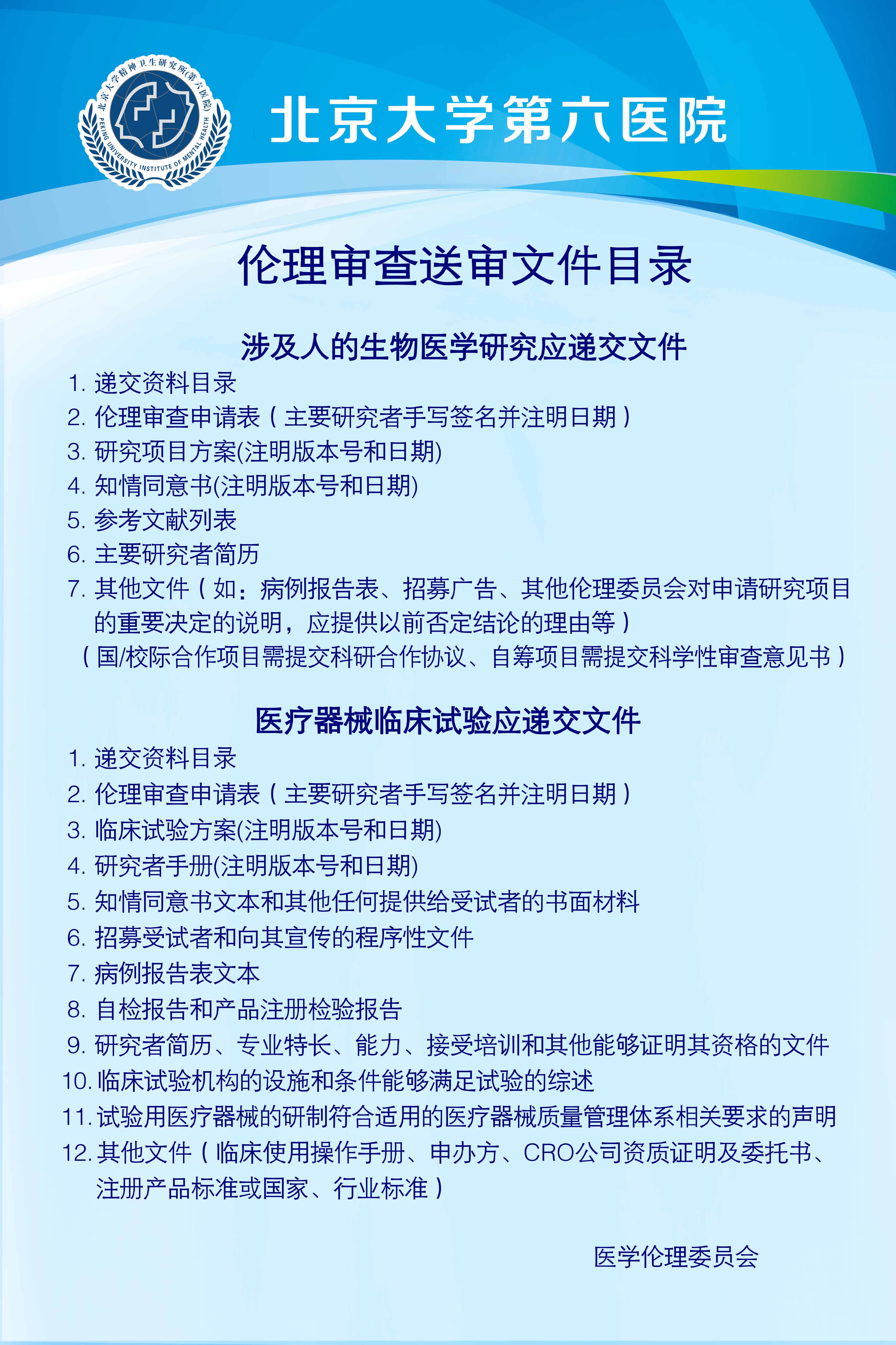 医学研究、器械应递交资料目录(新)