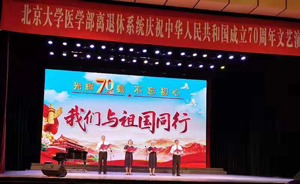 为庆祝祖国七十华诞,北医关工委、离退休工作处举行了主题为“七十载光辉岁月,我们与祖国同行”的文艺展演系列活动。系列活动主要以文艺节目展演、离退休工作展览和以《北医人》专刊形式记载离退休人员事迹等三种形式呈现。北大六院关工委、离退休办公室和离退休党支部积极组织北大六院离退休老师及学生等相关人员参与各项活动,共庆祖国华诞!
