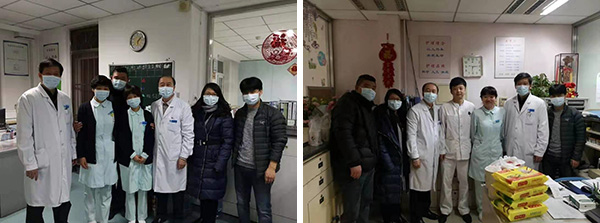 2020年1月24日是农历除夕,我院党委书记王向群,副院长孙洪强、张霞与工会常务副主席张涛、护理部主任王涌于除夕夜慰问春节期间坚守一线的医务人员和教职员工。王书记等一行每到一处,均要细细询问值班人员的工作情况及住院患者的情况,叮嘱大家注意疫情防控、保重身体,并对值班人员牺牲和家人团聚机会,坚守岗位、护卫患者健康的辛勤付出表示感谢,向他们致以新春佳节的问候和祝福,祝愿大家在新的一年工作顺利、身体健康!