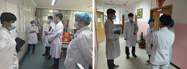 检查组重点检查了患者收治的流程和预案、病区及门诊防疫物资管理及环境安全。期间孙院长详细询问了各科室目前的患者收治情况、工作人员放假出行安排,并就目前新冠肺炎病毒病例监测、排查和管理工作及患者收治工作提出指导建议。