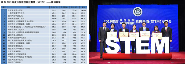 我院连续六年荣获中国医院科技量值精神病学学科第一