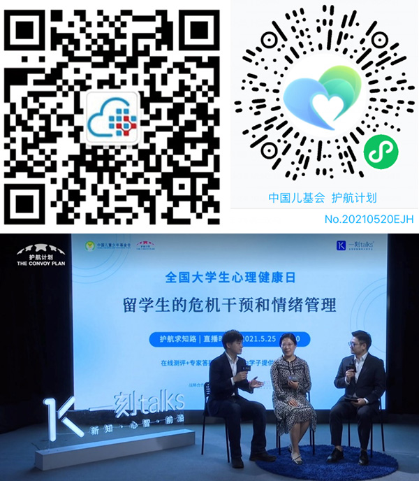 5月25日晚8时,中国儿童少年基金会发起的护航计划特邀我院马燕桃主任医师聚焦后疫情时代的海外学子心理健康,开展主题讲座,并与吴晓龙、靳宇辰两位同学进行互动答疑。马燕桃主任医师通过“压力与情绪对身心的影响”、“焦虑的心理成因”、“心态与自我认知培养和引导”与“自我心身状态测评”四个维度展开讲解,帮助留学生认识并缓解负面情绪及其带来的压力。