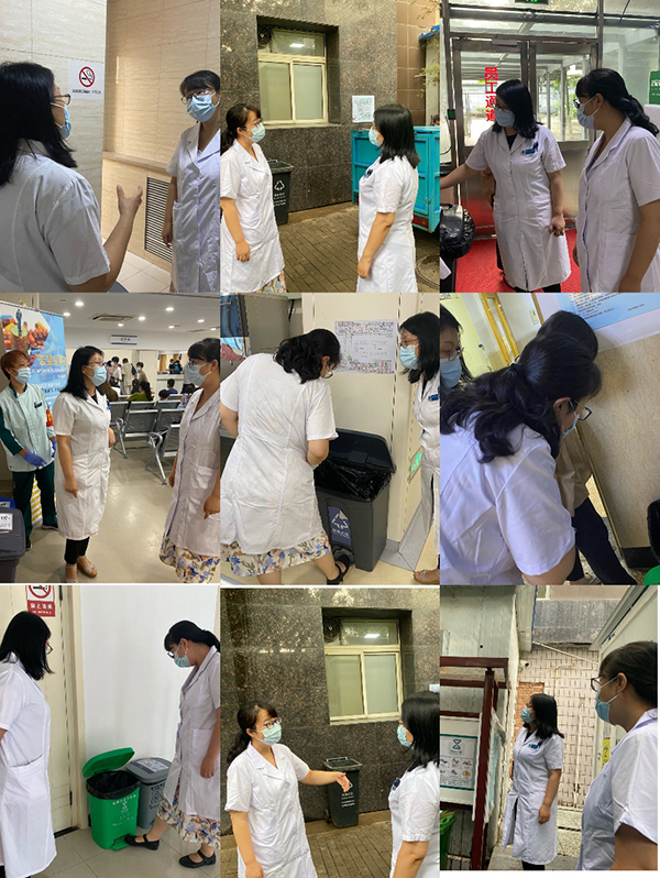 2021年7月19日下午,陈斌斌书记、张霞副院长与生活垃圾管理工作小组成员对医院生活垃圾分类管理情况进行了督导检查。此次检查是根据《关于做好公共机构生活垃圾分类近期重点工作的通知》(国管办发[2021]4号)以及北京市医疗卫生机构新版生活垃圾分类考核评价表的文件精神,以开展生活垃圾分类整改回头看、建立常态化工作机制为工作方针,在生活垃圾分类工作小组人员组成基础上建立了多部门联合督导组,每月分别对南北两院区生活垃圾分类情况进行的督导检查。此次南院督导检查过程中发现垃圾桶仍存在混投现象,但较上次有明显改善。同时发现个别垃圾投放区域容器设置不够全面,需增设种类,方便患者及工作人员分类投放。