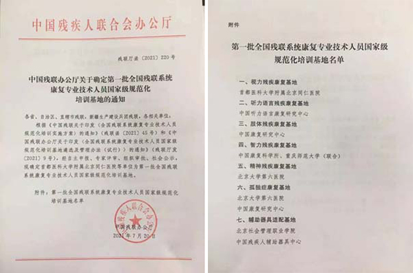 我院获批成为第一批全国残联系统康复专业技术人员国家级规范化培训基地
