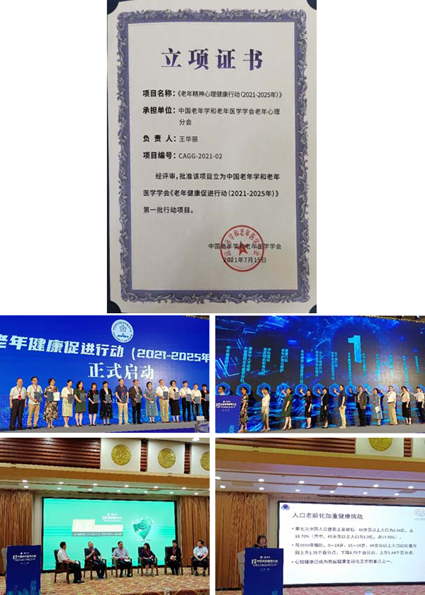 为积极应对老龄化、实现健康老龄化,中国老年学和老年医学学会在全国范围内组织开展《老年健康促进行动(2021-2025年)》专项活动。学会先后制定《老年健康促进行动(2021-2025年)试行方案》、管理办法等配套文件和流程,筛选出《老年精神心理健康行动》等首批十六个项目,并在2021年7月15日“第十一届慢病管理大会暨医养结合发展论坛”上正式启动。作为《老年精神心理健康行动》项目负责人,中国老年学和老年医学学会老年心理分会副主任委员、我院王华丽教授出席了启动仪式。