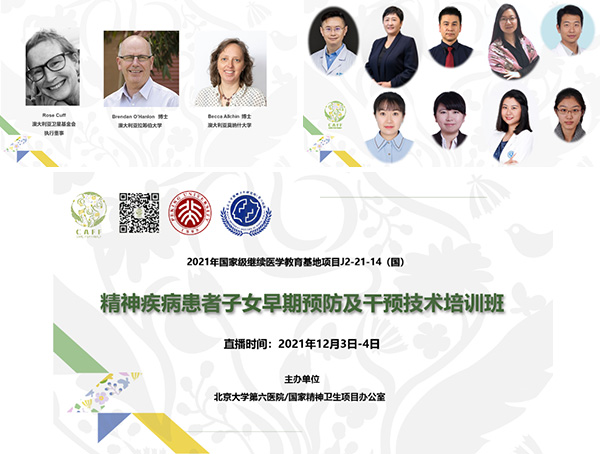 2021年12月4-5日,我院公共卫生事业部/国家精神卫生项目办公室在线举办“2021年精神疾病患者子女早期预防及干预技术培训班”。来自我院关爱精神障碍患者家庭(CAFF花园)项目10个试点地区合作单位的150名精神科医护人员、心理治疗师、心理咨询师、社区精防人员参与本次培训。作为国内首个针对精神疾病患者子女循证服务的系列培训班,本培训为我国发展精神疾病家庭工作模式、高危儿童青少年早期预防积累经验并储备力量。