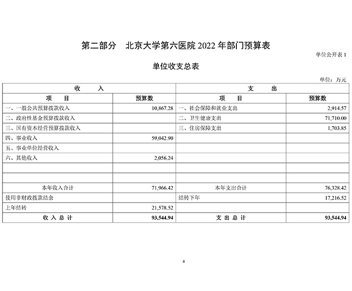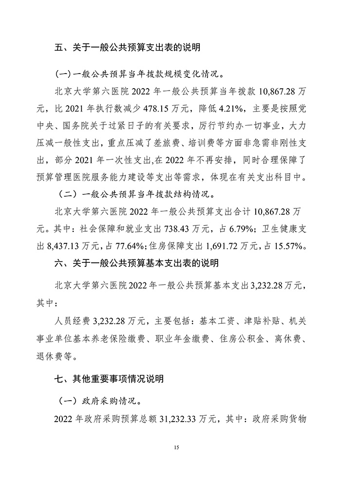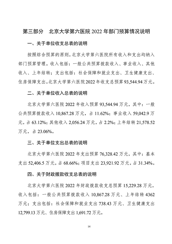 北京大学第六医院2022年部门预算