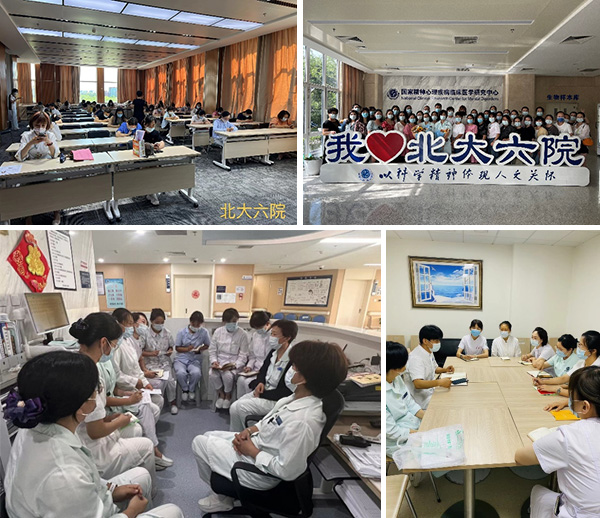 临床实践培训阶段是巩固前期理论知识和提升护理技能的必要阶段,同时也是专科护士学习中最紧张的阶段。39名学员被分配到我院昌平院区的6个病区进行学习,在4周的时间里,大家不仅要完成临床护理计划中安排的护理任务,还要尽快了解基地教学医院及病房的环境、收治患者的特点,并跟随教学老师见习三级护理评估模式、常见精神疾病的护理技巧,掌握电休克治疗前中后的护理和精神科风险评估的重点及措施落实、药物观察与护理的措施、暴力行为、自杀自伤行为的防范与处置等。最终还需进行理论考试、临床护理操作考试及健康教育课件汇报,39名学员均在规定的时间内顺利完成。