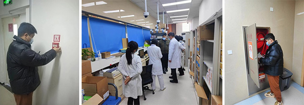 2月7日上午,孙洪强副院长带领医务处、护理部、院感处、保卫办公室一起进行了昌平院区春节前安全大排查工作。根据公安与消防部门的业务指导意见,本次保卫办公室检查的重点以消防“两个通道”管控、易燃物清理、电器火灾防控、电动自行车安全充电、重点涉财科室防盗、安防消防设备设施运行等为主体展开。