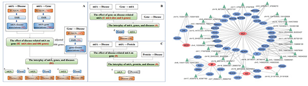 然后,研究者通过整合m6A-QTL数据和eQTL数据,分析m6A与基因表达的关系。结果表明,大多数m6A位点影响多个基因,而且大部分m6A位点调控的基因并非近端基因。根据m6A-疾病和m6A-基因这两部分的分析结果,研究者对得到的疾病相关m6A调控的基因进一步结合eQTL数据分析gene-疾病的关系,最终得到81个m6A-基因-疾病的关联。这些结果涵盖了三种m6A作用模式(图1A a-c),为理解m6A导致疾病的调控模式提供了重要数据。